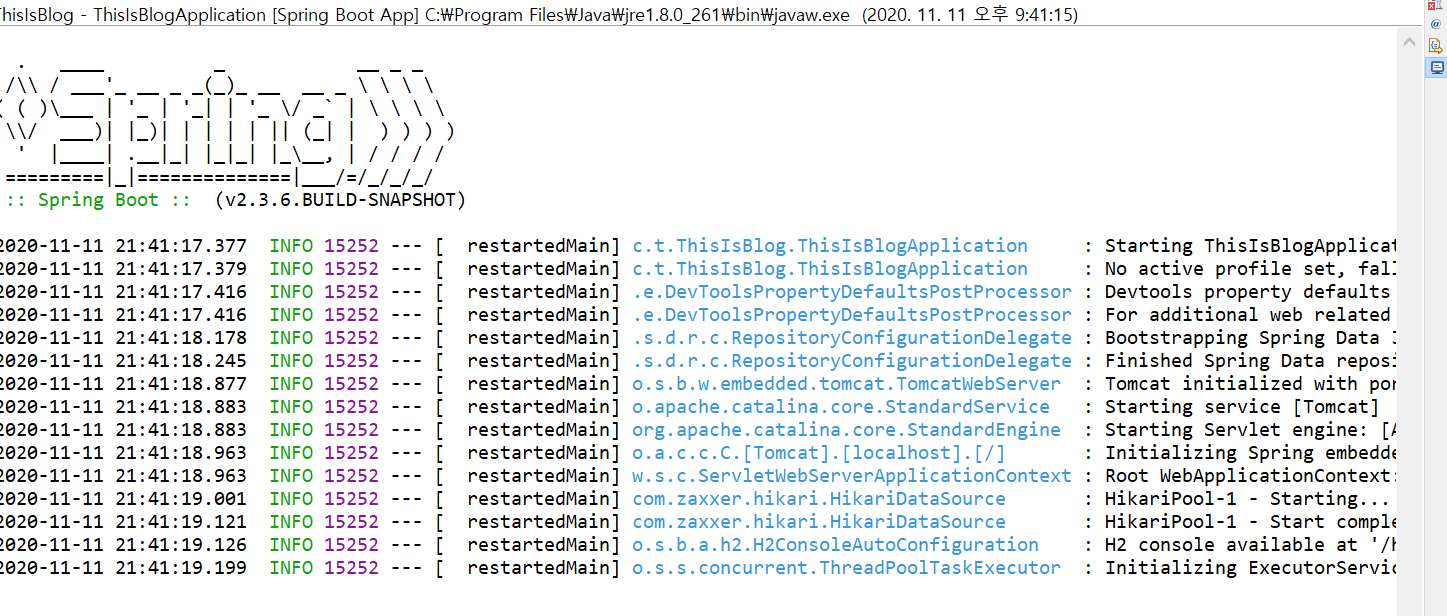 BlogRepository 안에 저장함고 동시에 log.info() 메서드를 이용해 로그에 출력하도록 설정했습니다.