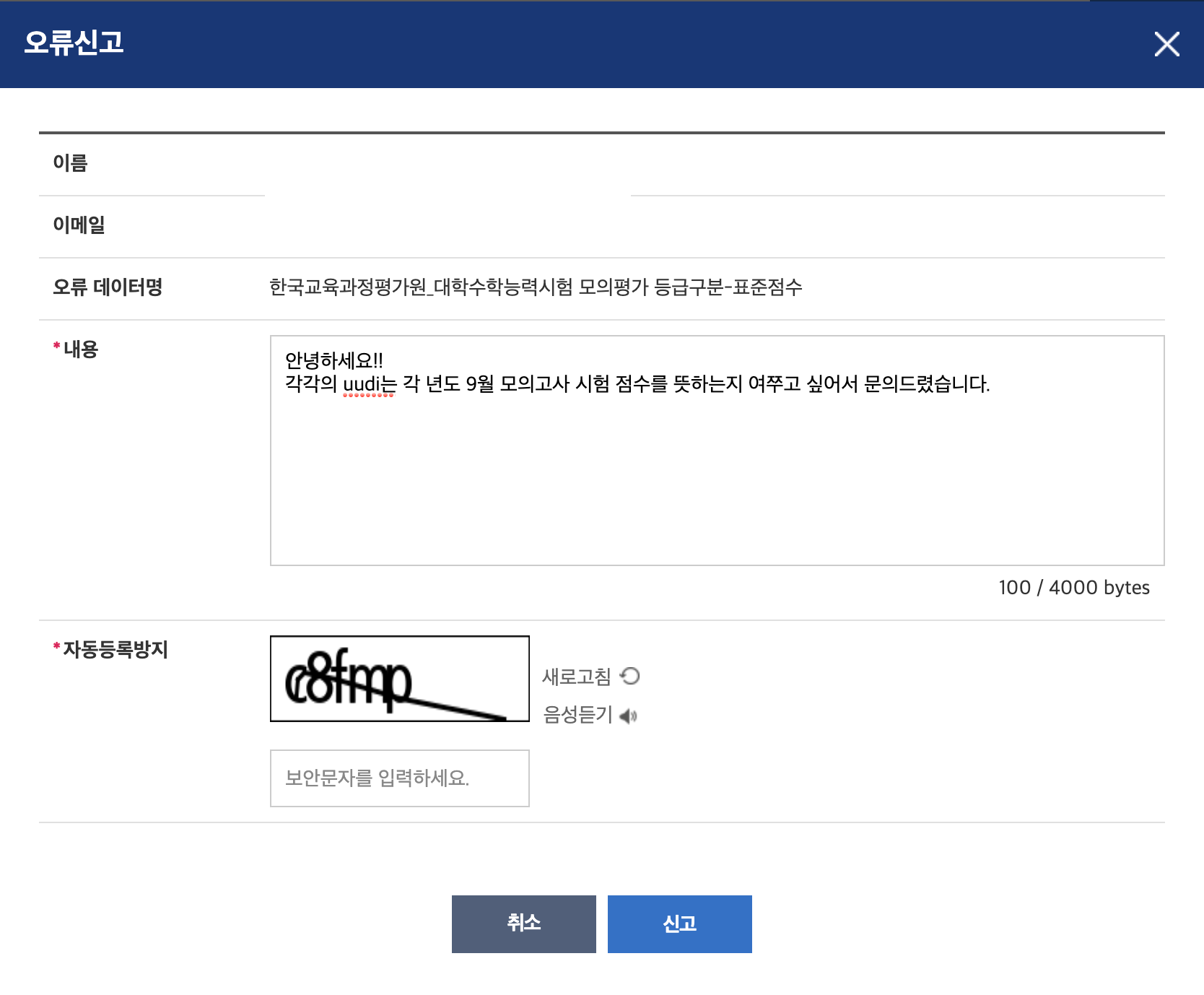 한국 교육과정 평가원_대학 수학능력시험 모의평가 등급 구분-표준점수