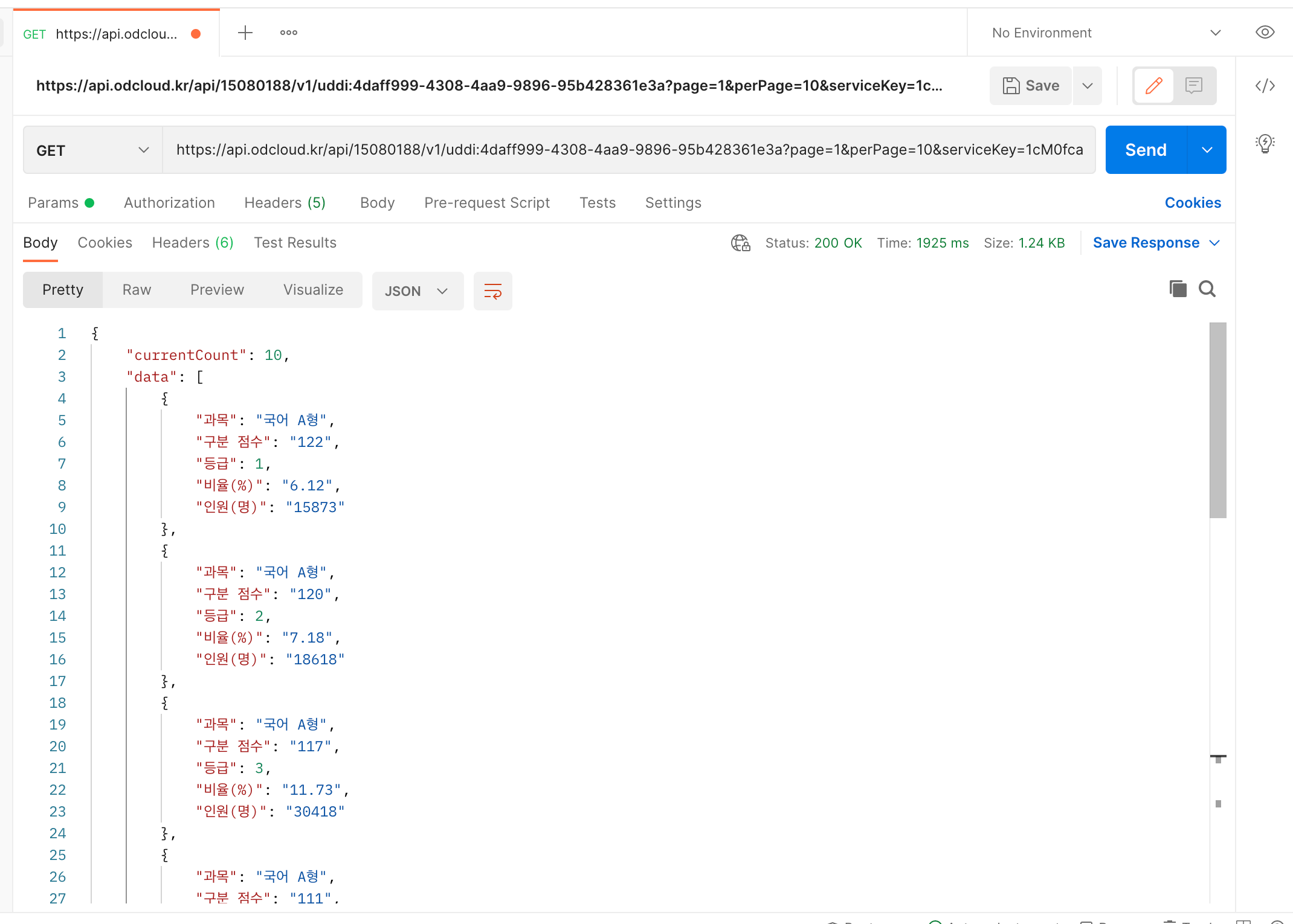 서비스 키를 디코딩한 후에 http에 데이터를 요청할 수 있습니다.
