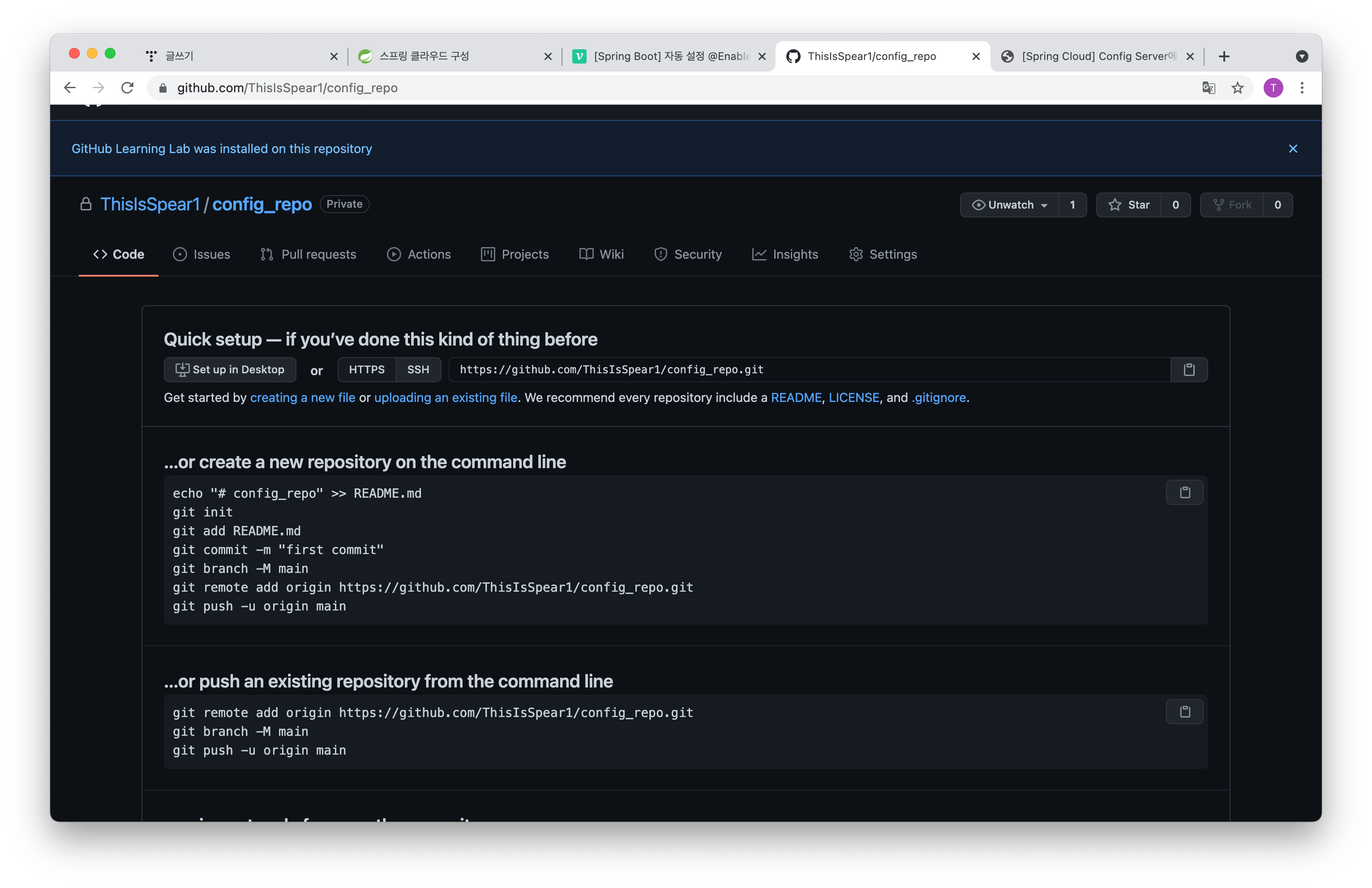 그런 다음 깃에다가 새로운 저장소를 생성해 구성 정보를 저장해둘 겁니다.