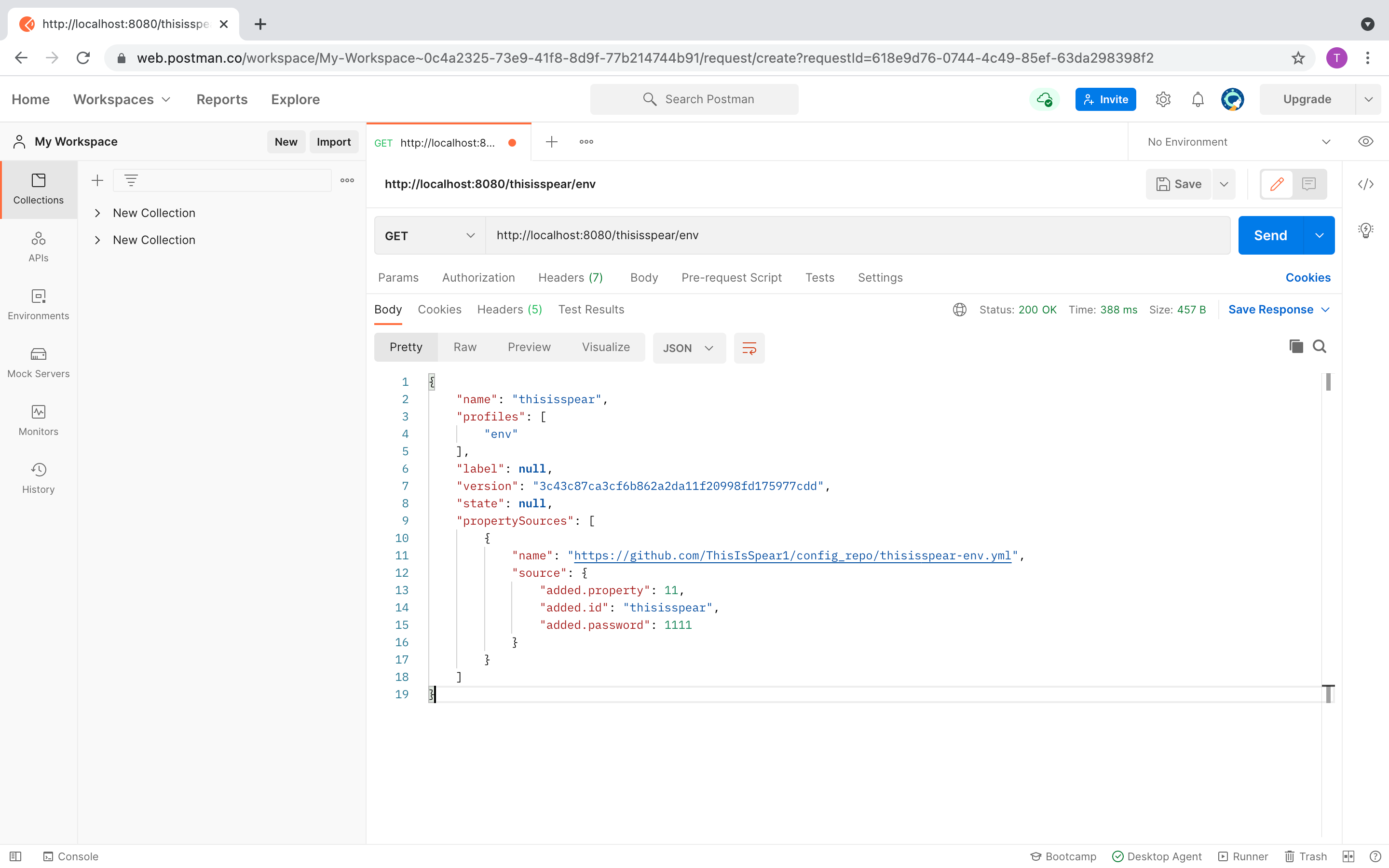 localhost:{port}/thisisspear/env를 실행시켰을 때 안에 구성 정보가 출력이 됩니다.