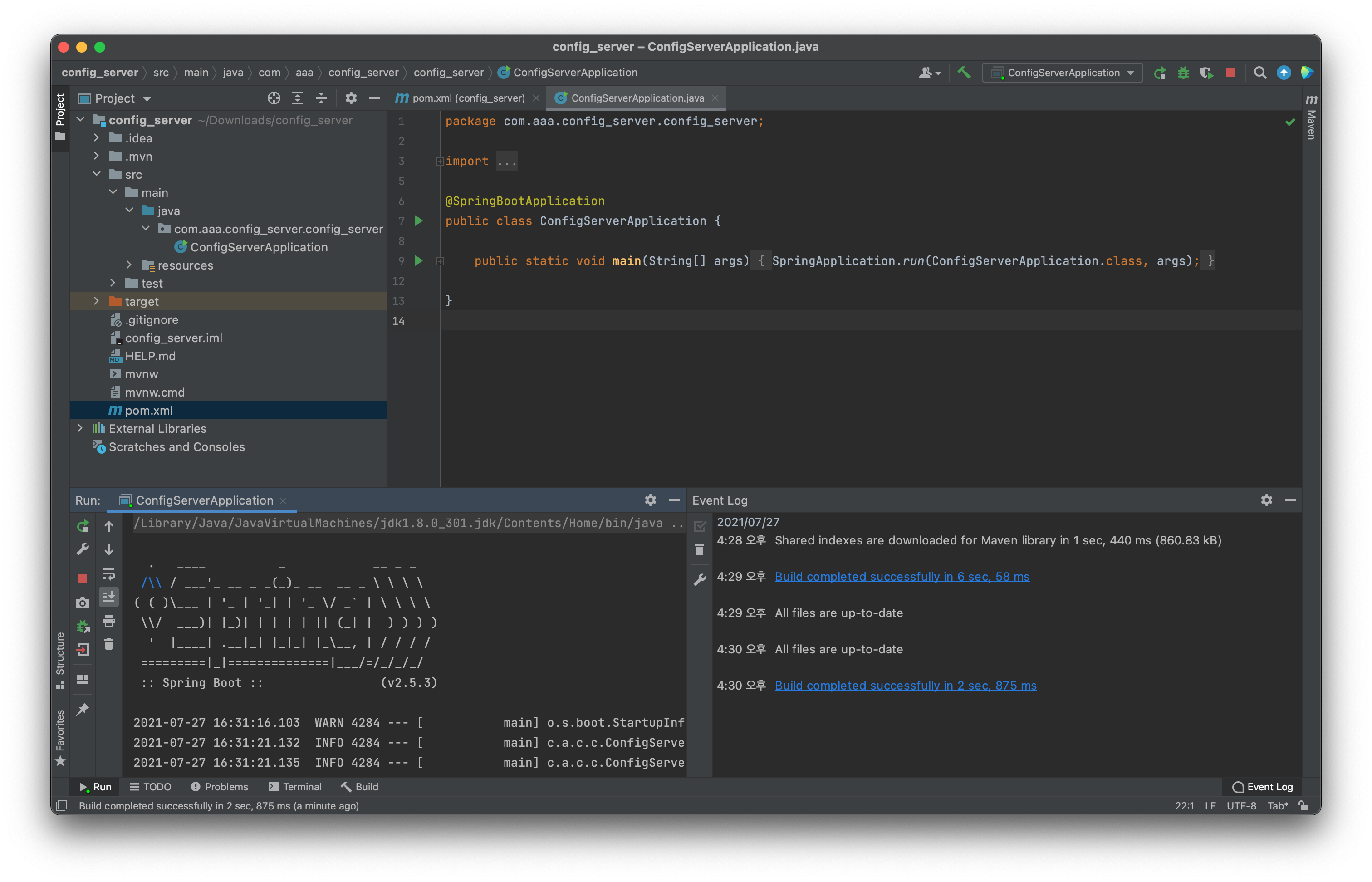 아래는 서버(config-server)를 실행시켰을 때 나오는 화면입니다.