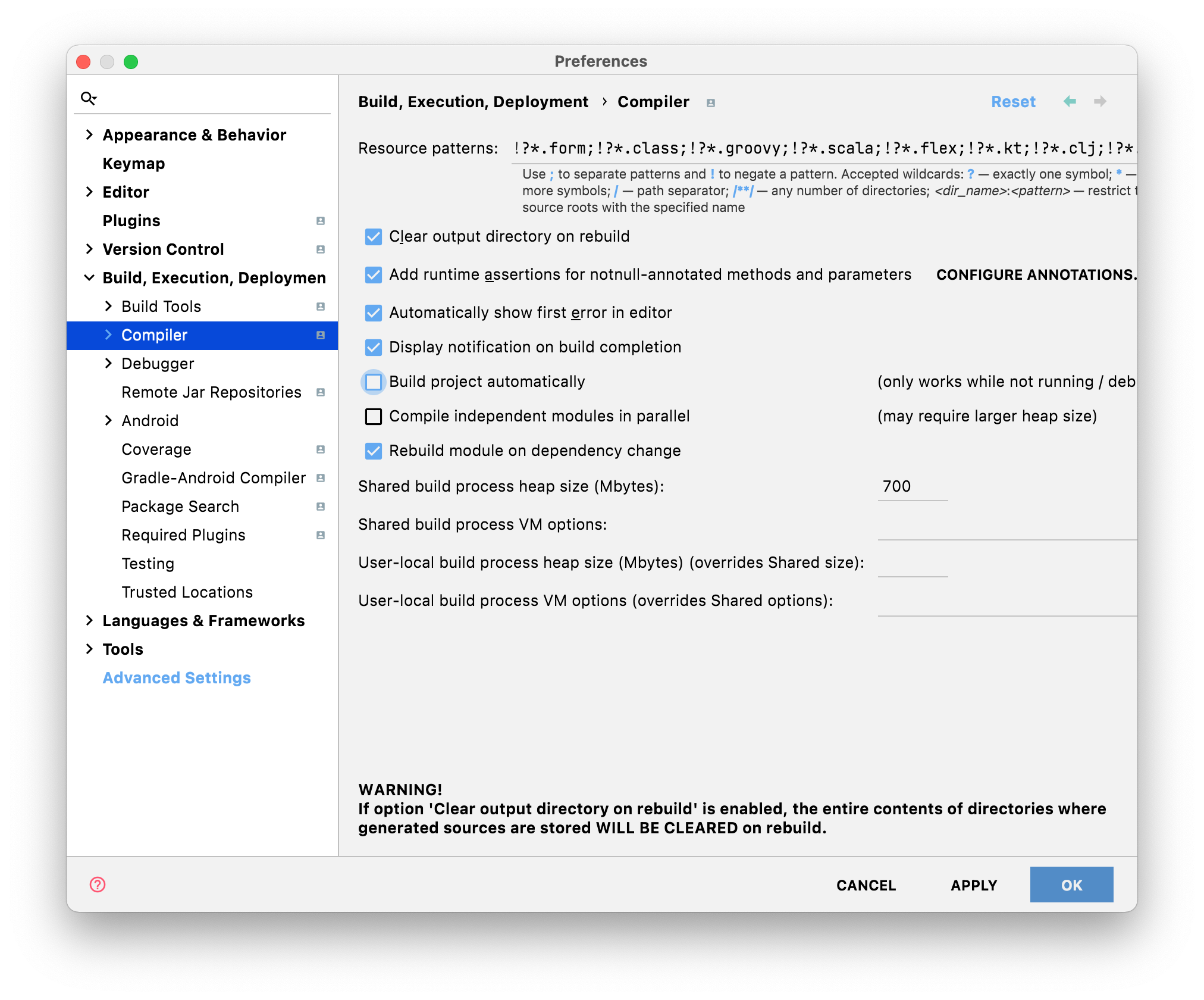 다른 문서에서 보면 Registry에서 compiler.automake.allow.when.app.running 부분의 체크박스를 클릭해주면 된다고 적혀있지만 2021.2월 버전에는 존재하지 않았기에 다른 방법을 찾아봐야 했습니다.