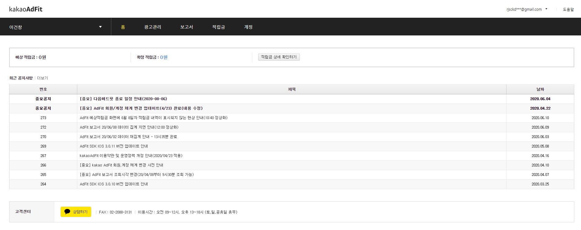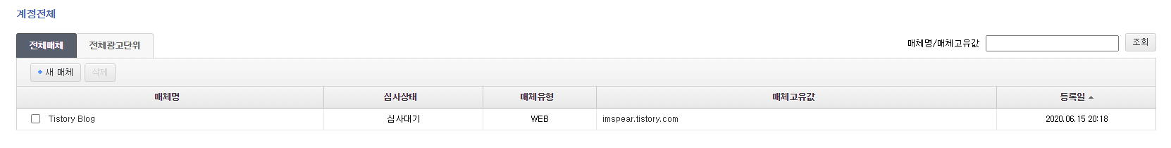 광고 관리를 클릭하고 새로운 매체를 등록하시면 됩니다.