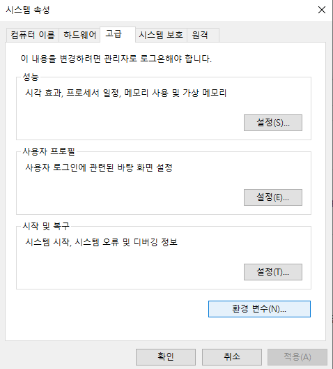 윈도에서 환경변수 설정하는 방법을 적어보려고 합니다.