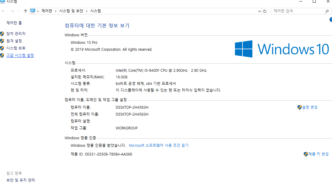 고급 시스템 설정을 클릭해서