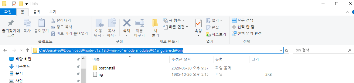 그럼 ng 라는 파일이 보이죠? 이 PATH를 잘 복사해두셨다가 다시 붙여 넣기 하셔야 해요~