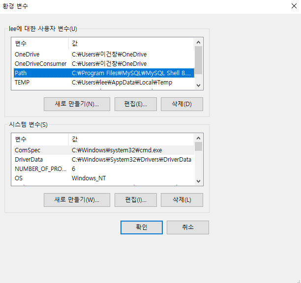 파란 부분인 Path를 클릭하고 편집(E)을 누르시면 됩니다.