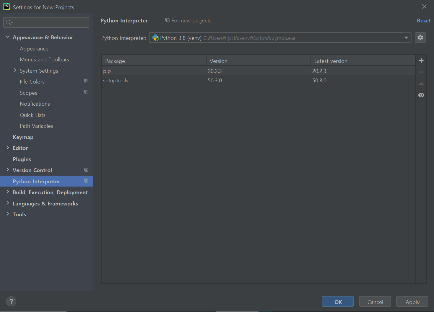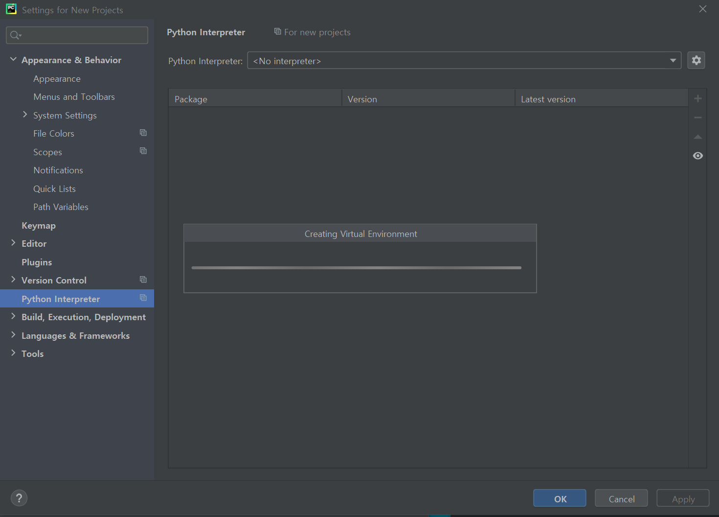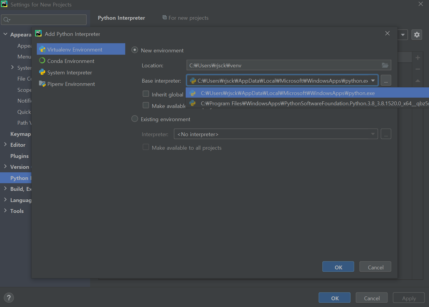 마지막으로 아래의 Interpreter를 지정해도 설정 안 되는 건 단순 파이참 IDE의 문제가 아니라